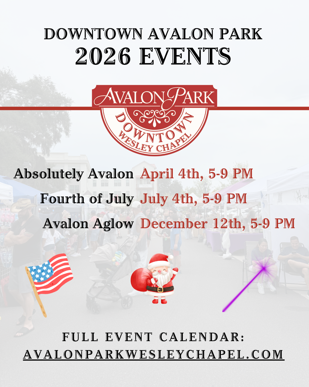 Join us in Avalon Park Wesley Chapel on Saturday, April 4th from 5–9 PM for an unforgettable community celebration! Enjoy a Kids Area & Bounce Park, food trucks, live performances, a Children’s Entrepreneur Market, photos with the Easter Bunny, artisan, craft & business vendors, and end the night with a spectacular laser light show at 9 PM. Come celebrate everything that makes Avalon Park Absolutely Amazing! 🎉✨
